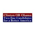 • Clinton OR Obama bumper sticker