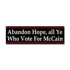 Abandon Hope Anti-McCain car stickerFrom the Designer Tell the world how you feel! Our bumper stickers are perfect for expressing yourself while cruising down the highway or just for posting on the wall.