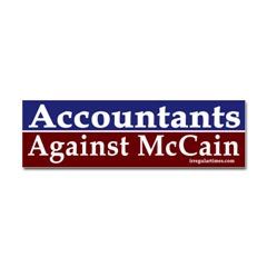 Accountants Against McCain car stickerFrom the Designer Tell the world how you feel! Our bumper stickers are perfect for expressing yourself while cruising down the highway or just for posting on the wall.