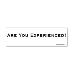 Are you experienced Bumper sticker.From the Designer Tell the world how you feel! Our bumper stickers are perfect for expressing yourself while cruising down the highway or just for posting on the wall.