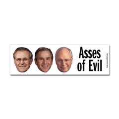 Asses of Evil BumperstickerFrom the Designer Tell the world how you feel! Our bumper stickers are perfect for expressing yourself while cruising down the highway or just for posting on the wall.