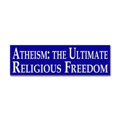 Atheism Ultimate Religious FreedomFrom the Designer Tell the world how you feel! Our bumper stickers are perfect for expressing yourself while cruising down the highway or just for posting on the wall.