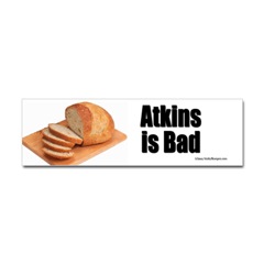 Atkins is Bad bumper stickerFrom the Designer Tell the world how you feel! Our bumper stickers are perfect for expressing yourself while cruising down the highway or just for posting on the wall.