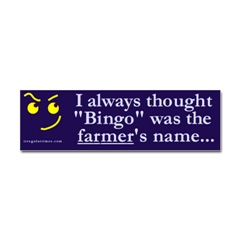 Bingo the Farmer Bumper StickerFrom the Designer Tell the world how you feel! Our bumper stickers are perfect for expressing yourself while cruising down the highway or just for posting on the wall.