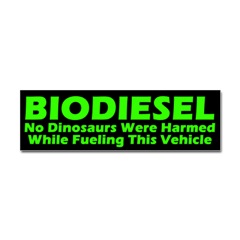 BIODIESEL No Dinosaurs Harmed While FuelingGreenFrom the Designer Tell the world how you feel! Our bumper stickers are perfect for expressing yourself while cruising down the highway or just for posting on the wall.