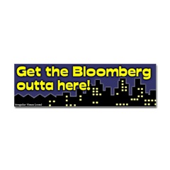 Bloomberg Outta Here BumperstickerFrom the Designer Tell the world how you feel! Our bumper stickers are perfect for expressing yourself while cruising down the highway or just for posting on the wall.