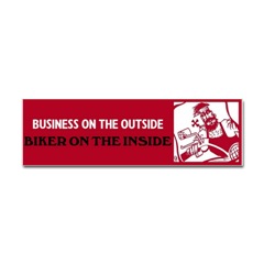 Business OutsideBiker Inside bumperstickerFrom the Designer Tell the world how you feel! Our bumper stickers are perfect for expressing yourself while cruising down the highway or just for posting on the wall.