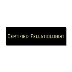 Certified Fellatiologist BumperFrom the Designer Tell the world how you feel! Our bumper stickers are perfect for expressing yourself while cruising down the highway or just for posting on the wall.