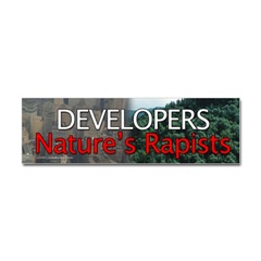 Developers Nature's Rapists Sticker BumperFrom the Designer Tell the world how you feel! Our bumper stickers are perfect for expressing yourself while cruising down the highway or just for posting on the wall.