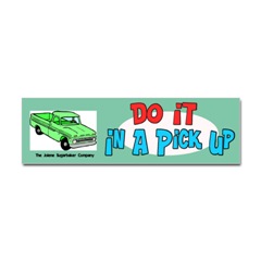 Do It In a Pickup Sticker BumperFrom the Designer Tell the world how you feel! Our bumper stickers are perfect for expressing yourself while cruising down the highway or just for posting on the wall.