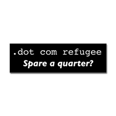 .dot com refugee bumperstickerProduct DetailsTell the world how you feel! Our bumper stickers are perfect for expressing yourself while cruising down the highway or just for posting on the wall.
