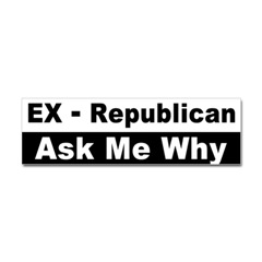 Ex-Republican Bumper StickerFrom the Designer Tell the world how you feel! Our bumper stickers are perfect for expressing yourself while cruising down the highway or just for posting on the wall.