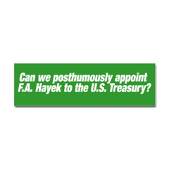 F.A. Hayek Treasury BumperstickerFrom the Designer Tell the world how you feel! Our bumper stickers are perfect for expressing yourself while cruising down the highway or just for posting on the wall.