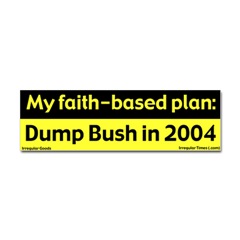 Faith Says Dump Bush 2004 Bumper StickerFrom the Designer Tell the world how you feel! Our bumper stickers are perfect for expressing yourself while cruising down the highway or just for posting on the wall.