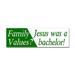 Family Values & Jesus Bumper StickerFrom the Designer Tell the world how you feel! Our bumper stickers are perfect for expressing yourself while cruising down the highway or just for posting on the wall.