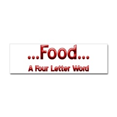 Food A Four Letter Word Sticker BumperProduct DetailsTell the world how you feel! Our bumper stickers are perfect for expressing yourself while cruising down the highway or just for posting on the wall.