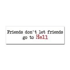 Friends don't let friends go to Hell BumperstickerFrom the Designer Tell the world how you feel! Our bumper stickers are perfect for expressing yourself while cruising down the highway or just for posting on the wall.
