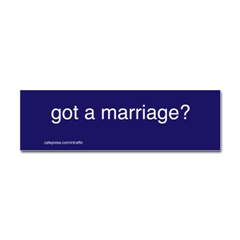 got a marriage Sticker BumperProduct DetailsTell the world how you feel! Our bumper stickers are perfect for expressing yourself while cruising down the highway or just for posting on the wall.