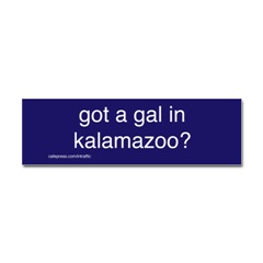 got kalamazoo Sticker BumperProduct DetailsTell the world how you feel! Our bumper stickers are perfect for expressing yourself while cruising down the highway or just for posting on the wall.