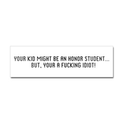 Honor Student... Sticker BumperProduct DetailsTell the world how you feel! Our bumper stickers are perfect for expressing yourself while cruising down the highway or just for posting on the wall.