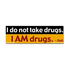 I am drugs Dali Bumper StickerFrom the Designer Tell the world how you feel! Our bumper stickers are perfect for expressing yourself while cruising down the highway or just for posting on the wall.