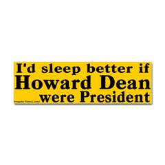 I'd Sleep Better if Dean were PresidentFrom the Designer Tell the world how you feel! Our bumper stickers are perfect for expressing yourself while cruising down the highway or just for posting on the wall.