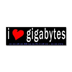 I heart gigabytes bumperstickerFrom the Designer Tell the world how you feel! Our bumper stickers are perfect for expressing yourself while cruising down the highway or just for posting on the wall.