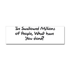 I've Swallowed Millions What Sticker BumperProduct DetailsTell the world how you feel! Our bumper stickers are perfect for expressing yourself while cruising down the highway or just for posting on the wall.