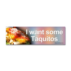 I want some Taquitos bumper stickerFrom the Designer Tell the world how you feel! Our bumper stickers are perfect for expressing yourself while cruising down the highway or just for posting on the wall.