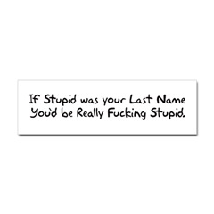 If Stupid Was Your Last Name Sticker BumperProduct DetailsTell the world how you feel! Our bumper stickers are perfect for expressing yourself while cruising down the highway or just for posting on the wall.