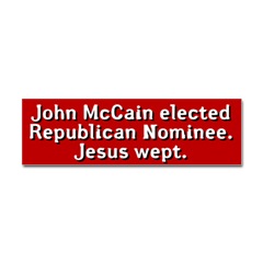 John McCain Jesus Wept Sticker BumperFrom the Designer Tell the world how you feel! Our bumper stickers are perfect for expressing yourself while cruising down the highway or just for posting on the wall.