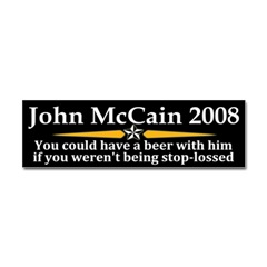 John McCain Stop Loss Bumper StickerFrom the Designer Tell the world how you feel! Our bumper stickers are perfect for expressing yourself while cruising down the highway or just for posting on the wall.