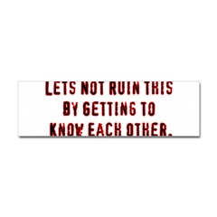 Let's Not Ruin this Sticker BumperFrom the Designer Tell the world how you feel! Our bumper stickers are perfect for expressing yourself while cruising down the highway or just for posting on the wall.