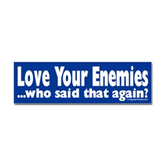 Love Your Enemies bumper stickerFrom the Designer Tell the world how you feel! Our bumper stickers are perfect for expressing yourself while cruising down the highway or just for posting on the wall.