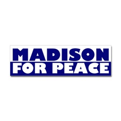 Madison For Peace bumper stickerFrom the Designer Tell the world how you feel! Our bumper stickers are perfect for expressing yourself while cruising down the highway or just for posting on the wall.