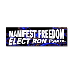 Manifest Freedom Elect Ron Paul Bumper StickerFrom the Designer Tell the world how you feel! Our bumper stickers are perfect for expressing yourself while cruising down the highway or just for posting on the wall.
