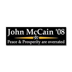 McCain Peace and Prosperity car stickerFrom the Designer Tell the world how you feel! Our bumper stickers are perfect for expressing yourself while cruising down the highway or just for posting on the wall.