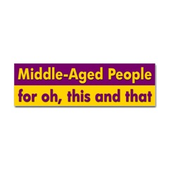 Middle-Aged People bumper stickerFrom the Designer Tell the world how you feel! Our bumper stickers are perfect for expressing yourself while cruising down the highway or just for posting on the wall.