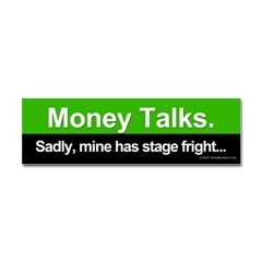 Money Talks bumper stickerFrom the Designer Tell the world how you feel! Our bumper stickers are perfect for expressing yourself while cruising down the highway or just for posting on the wall.