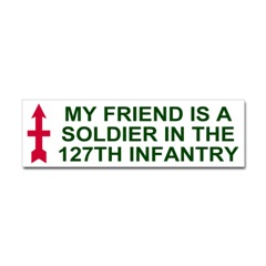 My Friend Is In The 127th InfantryFrom the Designer Tell the world how you feel! Our bumper stickers are perfect for expressing yourself while cruising down the highway or just for posting on the wall.