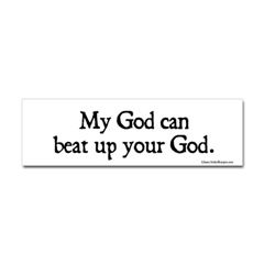 My God can beat up your God bumper sticker.From the Designer Tell the world how you feel! Our bumper stickers are perfect for expressing yourself while cruising down the highway or just for posting on the wall.