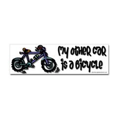 My other car is a bicycle bumper stickerFrom the Designer Tell the world how you feel! Our bumper stickers are perfect for expressing yourself while cruising down the highway or just for posting on the wall.