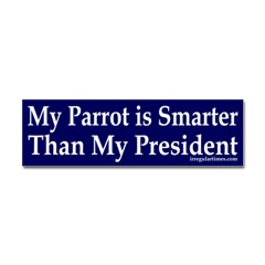 My Parrot is Smarter Than My PresidentFrom the Designer Tell the world how you feel! Our bumper stickers are perfect for expressing yourself while cruising down the highway or just for posting on the wall.