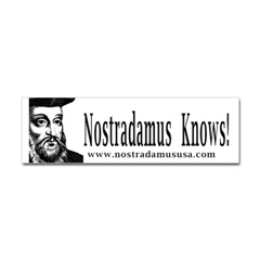 "Nostradamus Knows" Sticker BumperFrom the Designer Tell the world how you feel! Our bumper stickers are perfect for expressing yourself while cruising down the highway or just for posting on the wall.