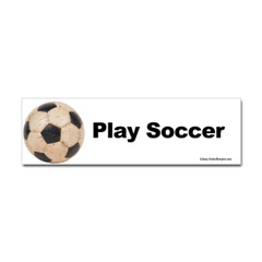 Play Soccer bumper sticker.From the Designer Tell the world how you feel! Our bumper stickers are perfect for expressing yourself while cruising down the highway or just for posting on the wall.