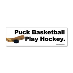 Puck Basketball the Hockey player's sticker.From the Designer Tell the world how you feel! Our bumper stickers are perfect for expressing yourself while cruising down the highway or just for posting on the wall.