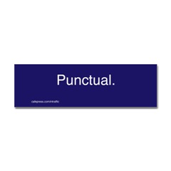 Punctual Sticker BumperProduct DetailsTell the world how you feel! Our bumper stickers are perfect for expressing yourself while cruising down the highway or just for posting on the wall.