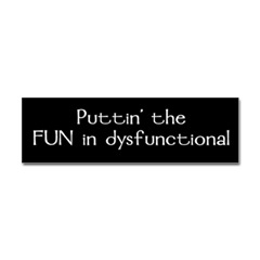 Puttin' the FUN in dysfunctional Sticker BumperFrom the Designer Tell the world how you feel! Our bumper stickers are perfect for expressing yourself while cruising down the highway or just for posting on the wall.