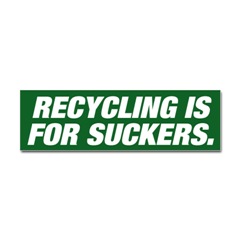 RECYCLING FOR SUCKERS BumperstickerFrom the Designer Tell the world how you feel! Our bumper stickers are perfect for expressing yourself while cruising down the highway or just for posting on the wall.