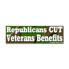 Republican Veterans Benefits BumperstickerFrom the Designer Tell the world how you feel! Our bumper stickers are perfect for expressing yourself while cruising down the highway or just for posting on the wall.